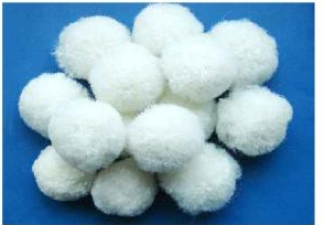 纤维球滤料是 由涤纶纤维扎结而成的球形滤料,它与传统的钢性滤料相比,具有弹性效果好,不上浮水面,空隙大,工作周期长,水头损失小等优点。在过滤过程中,滤层空隙沿水流方向逐渐变小,比较符合理想滤料由上大下小的孔隙率分布,从而形成了滤速快,截污容量大,过滤效果好,可再生反复使用,不必全部更换,只需定期清洗、省时省力等优点。纤维球滤料制做全部是人工完成、每个球体都从中部捆结牢固、球团用剪刀修剪。